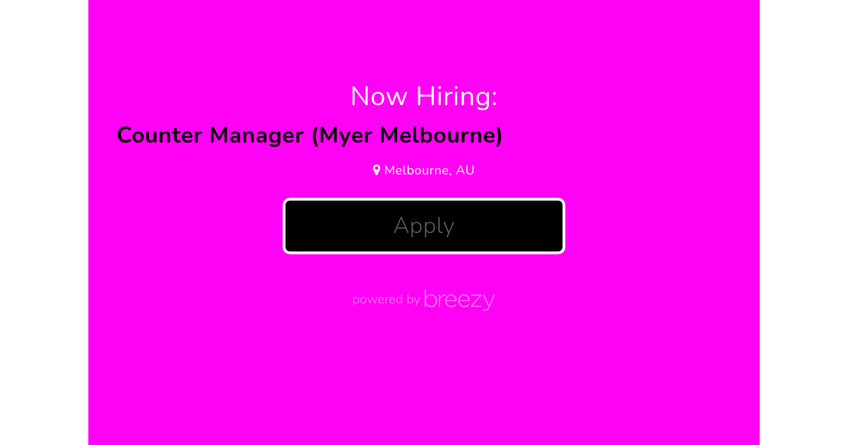 You will lead a wonderful team of around 5 Counter Associates, both casual & PT, at our Myer Melbourne Counter.