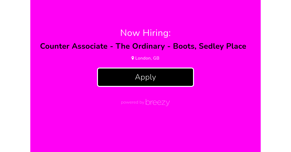 We are looking for a flexible customer service-oriented Sales Assistant known at DECIEM as Counter Associate, to join our "extraOrdinary" team in Boots, Sedley Place (Oxford Street), to deliver memorable experiences to our customers <3