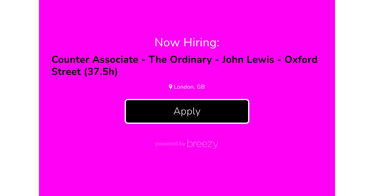 We are looking for a flexible customer service-oriented Sales Assistant known at DECIEM as Counter Associate, to join our "extraOrdinary" team in John Lewis - Oxford Street to deliver memorable experiences to our customers <3