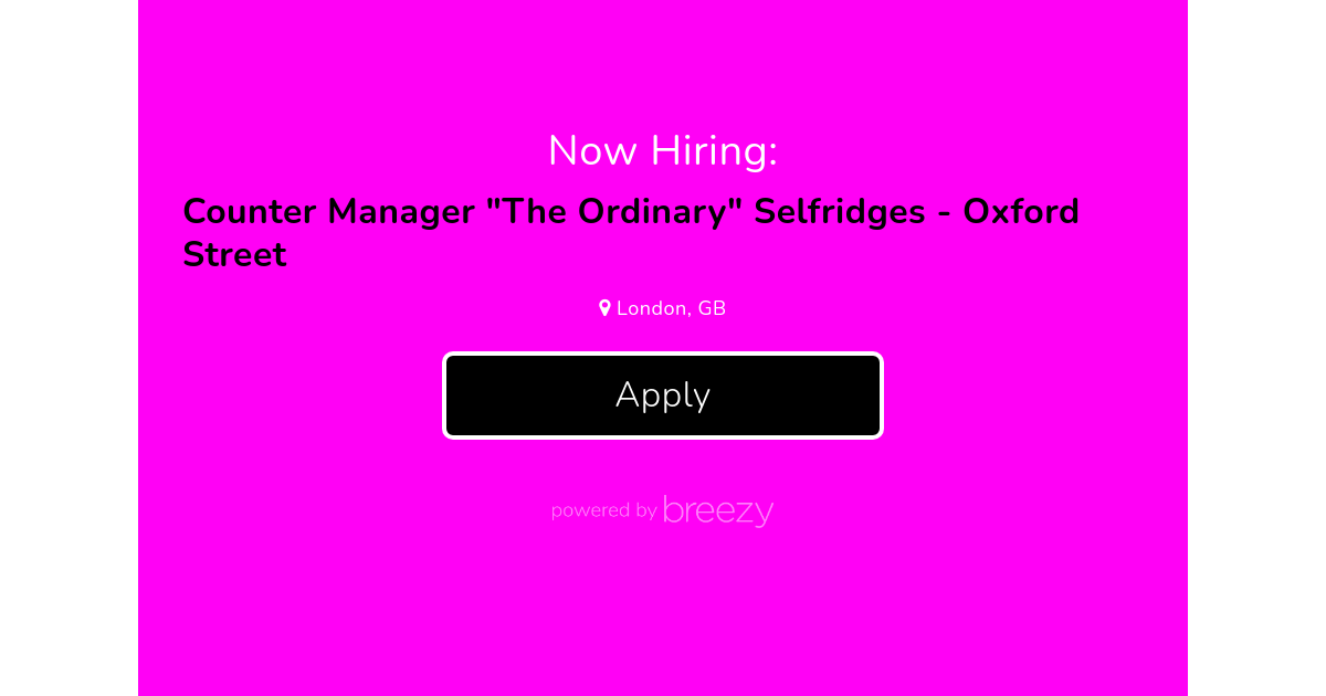 We’re looking for a Counter Manager with at least 2–3 years of management experience, ideally gained within the Fragrance, Beauty, Fashion, or Luxury Goods sectors, to join our wonderful DECIEM team at Selfridges, Oxford Street – London.